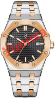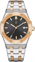 Мужские кварцевые часы. Циферблат украшен узором с метками в виде штрихов. Окошко даты. Рифленая заводная головка. Стальной браслет.