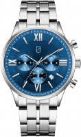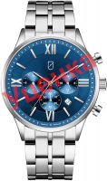 Мужские часы с японским механизмом. Второй часовой пояс. 12-ти и 24-х часовой формат времени. Циферблат с метками в виде штрихов и римских цифр. Окошко даты находится между отметками 4 и 5 часов. Рифленая заводная головка. Браслет с раскладывающейся застежкой.