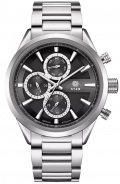 времени. Дата и день недели вынесены на отдельные циферблаты. Браслет с раскладывающейся застежкой.