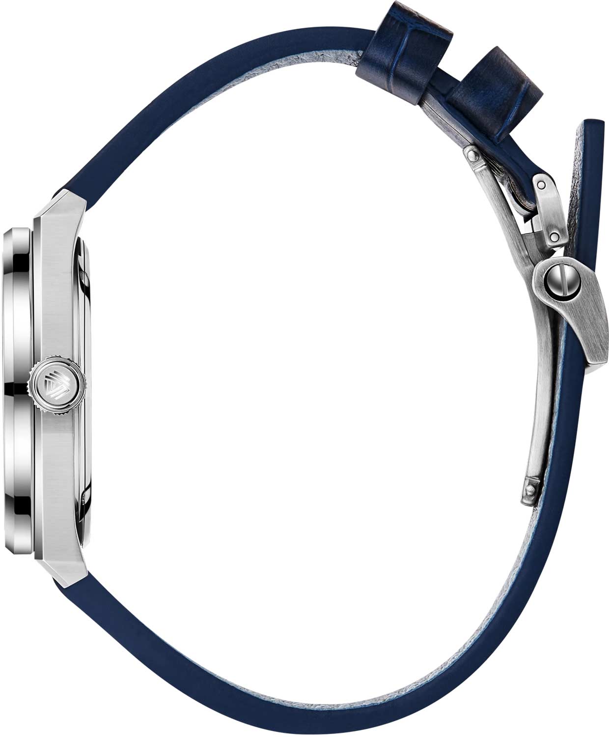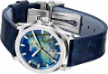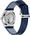 Через прозрачную заднюю крышку на 4-х винтах виден декорированный ротор. Кожаный ремешок с тиснением под крокодила с раскладывающейся застежкой. Система быстрой замены.