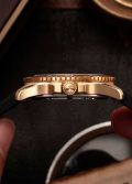 Плоское сапфировое стекло с антибликовым покрытием обладает небольшой скругленной кромкой. Рифленая заводная головка с защитой. Задняя крышка крепится на 6-ти винтах и украшена выгравированным изображением бронзовой четверки Святого Марка. Удобный каучуковый ремешок с классической застежкой. Система быстрой замены ремешка.