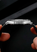 Связь между прошлым и будущим выражена в абсолютно черном цвете циферблата, который символизирует бесконечность и притягательность неизведанного. Черный матовый циферблат с адаптированным покрытием Musou Black™, которое поглощает 99,4% света.
