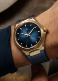 В механизме 24 камня, частота 28800 полуколебаний в час. Запас хода 42 часа. Круглый корпус из бронзового сплава QAI9-4, который со временем вступает в реакцию с окружающей средой и покрывается уникальной патиной, делая каждый экземпляр часов неповторимым. Рифленый безель. Эмалевый циферблат выполнен по технологии Sunray (солнечные лучи) и защищен прочным сапфировым стеклом с антибликовым покрытием.