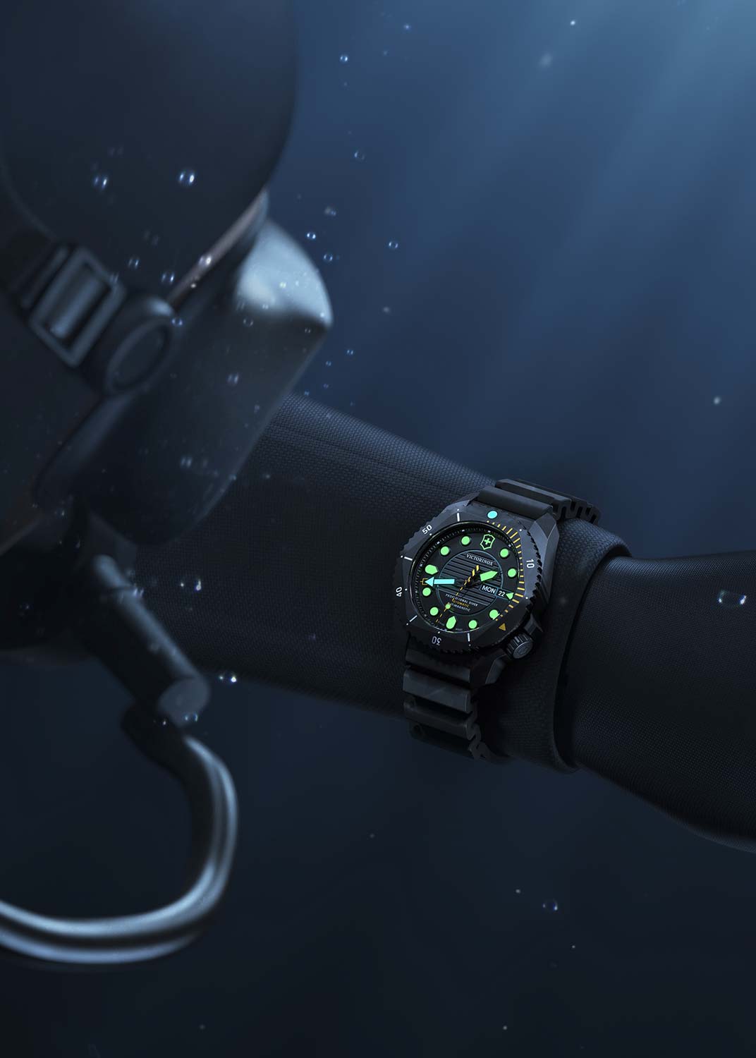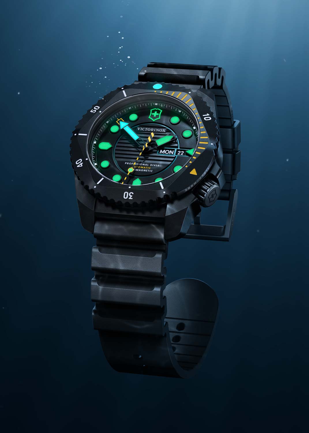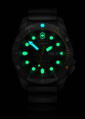 Профессиональные дайверские часы с водозащитой 300м, соответствующей стандарту ISO 6425. Заводная головка с защитой смещена в положение 4 часа. Стальная завинчивающаяся задняя крышка. Удобный резиновый ремешок с классической застежкой и системой быстрой замены.