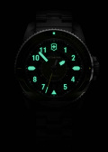 Стрелки и метки с люминесцентным покрытием, которое светится в темноте после непродолжительной зарядки на свету. Заводная головка с защитой. Завинчивающаяся прозрачная задняя крышка. Браслет с раскладывающейся застежкой и двойной системой защиты. Система быстрой замены браслета.