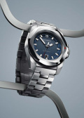 Окошко даты находится в положении 6 часов. Рифленая заводная головка с защитой. Завинчивающаяся задняя крышка. Надежный стальной браслет с раскладывающейся застежкой.