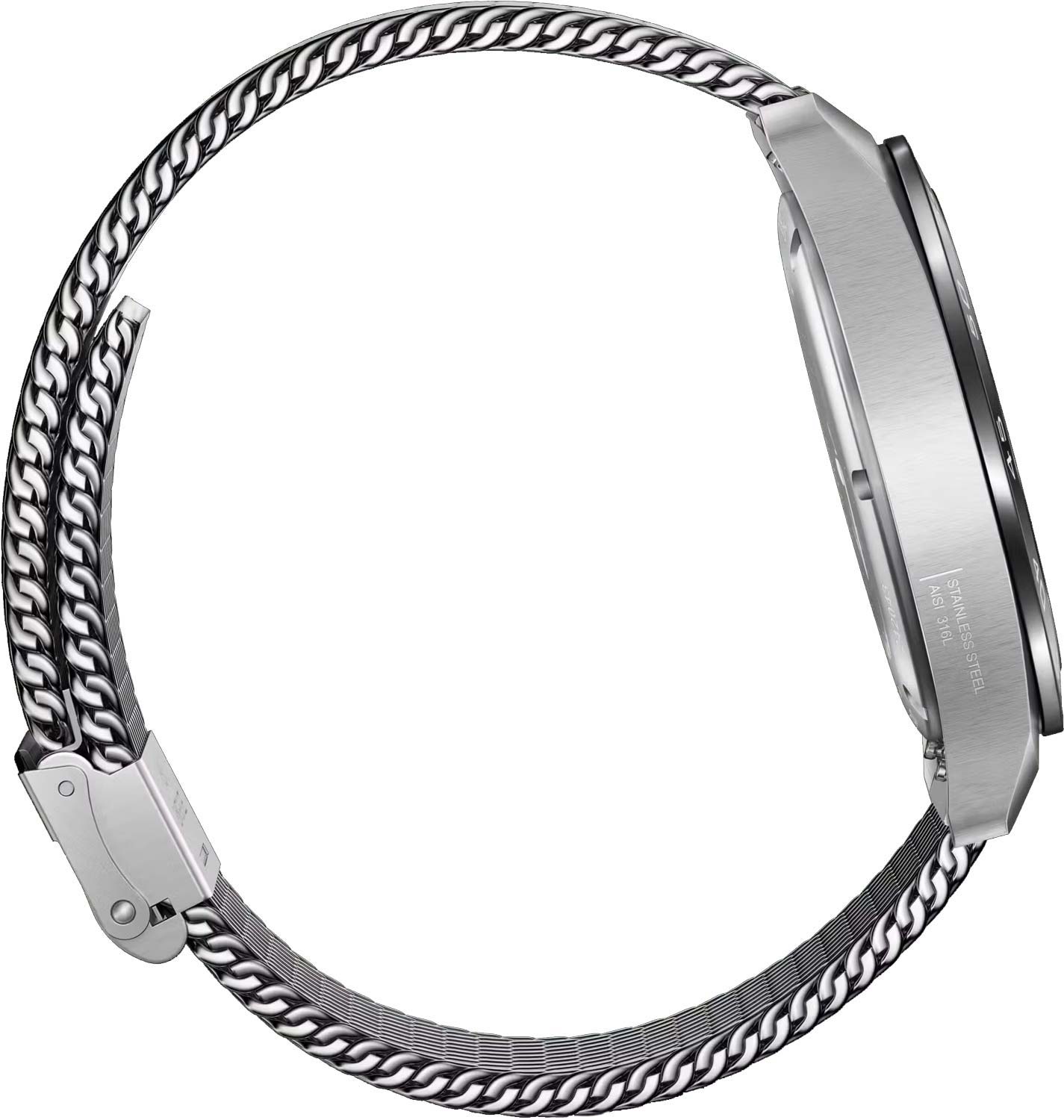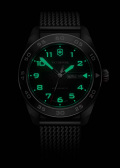 Люминесцентные стрелки и метки SuperLuminova, которые светятся в темноте после непродолжительной зарядки на свету. Рифленая заводная головка. Завинчивающаяся задняя крышка. Надежный и удобный стальной браслет миланского плетения с регулируемой застежкой.