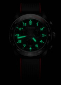 Люминесцентные стрелки и метки SuperLuminova, которые светятся в темноте после непродолжительной зарядки на свету. Рифленая заводная головка. Завинчивающаяся задняя крышка. Резиновый ремешок с классической застежкой и системой быстрой замены.