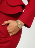 Женские наручные часы. Круглый стальной корпус. Циферблат выполнен по технологии Sunray (солнечные лучи) и украшен логотипом бренда. Накладные метки в виде точек и штрихов.