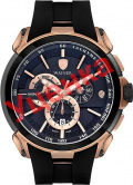 Часы-хронограф с секундомером и тахиметром. Круглый стальной корпус. Циферблат с метками в виде штрихов защищен прочным сапфировым стеклом. Окошко даты находится в положении 6 часов. Рифленая заводная головка с защитой. Удобный силиконовый ремешок с классической застежкой.