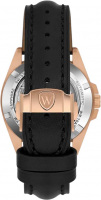 Прямоугольные стрелки в стиле Baton. Рифленая заводная головка с защитой. Завинчивающаяся задняя крышка. Удобный кожаный ремешок с раскладывающейся застежкой.