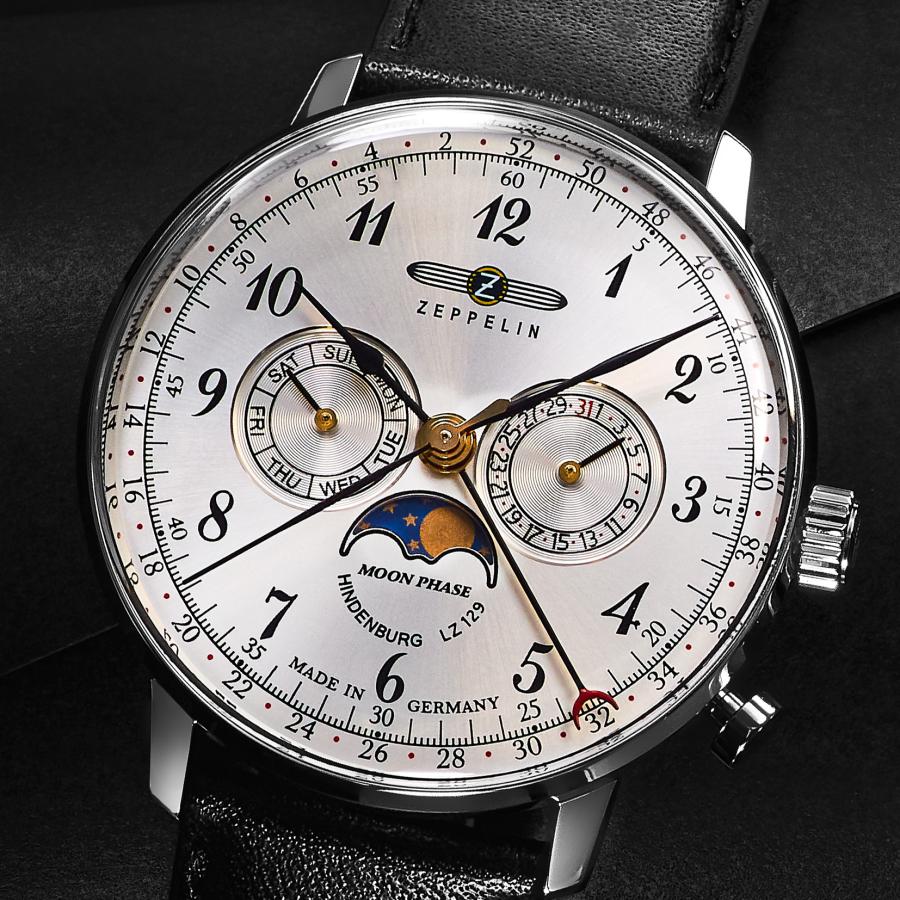 Циферблаты Zeppelin узнаваемы с первого взгляда: арабские цифры, скруглённые стрелки, шлицевая текстура, вдохновлённая корпусом дирижабля, и чёткая шкала. В коллекциях встречаются как чисто авиационные решения (GMT, тахиметр, хронографы), так и ретро-модели в духе 1930-х. Размеры корпуса варьируются от элегантных 36 мм до 43 мм — на любой вкус и запястье.