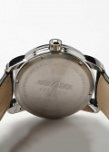Стрелки в стиле Sword. Рифленая заводная головка. Завинчивающаяся задняя крышка с гравировкой. Удобный кожаный ремешок с классической застежкой.