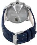 Окошко большой даты расположено в положении 6 часов. Слегка выпуклое минеральное стекло. Задняя крышка из штампованной нержавеющей стали. Рифленая заводная головка из нержавеющей стали. Ремешок из синей натуральной кожи с имитацией крокодиловой кожи. Классическая застежка из нержавеющей стали.