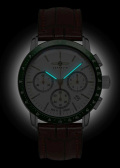 Заостренные прямоугольные стрелки в стиле Baton с люминесцентным покрытием, которое светится в темноте после непродолжительной зарядки на свету. Рифленая заводная головка. Удобный кожаный ремешок с классической застежкой.