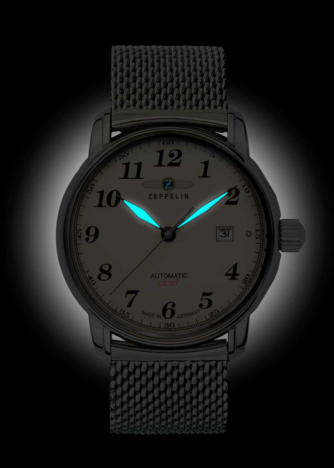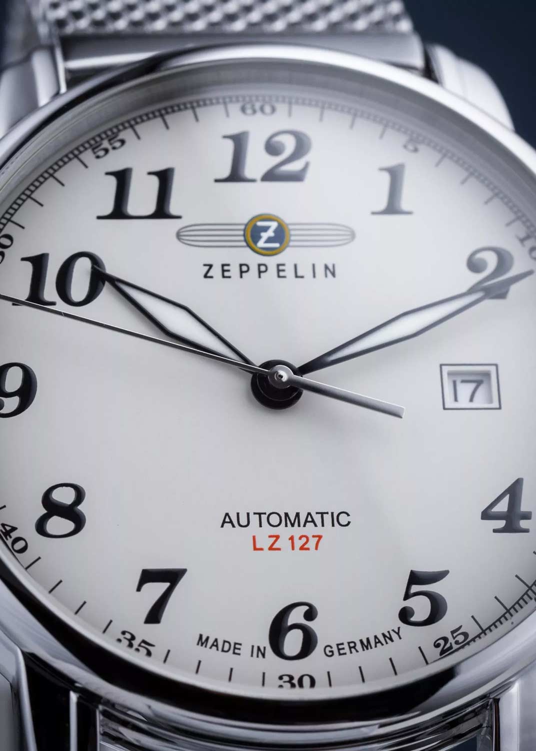 Циферблаты Zeppelin узнаваемы с первого взгляда: арабские цифры, скруглённые стрелки, шлицевая текстура, вдохновлённая корпусом дирижабля, и чёткая шкала. В коллекциях встречаются как чисто авиационные решения (GMT, тахиметр, хронографы), так и ретро-модели в духе 1930-х. Размеры корпуса варьируются от элегантных 36 мм до 43 мм — на любой вкус и запястье.