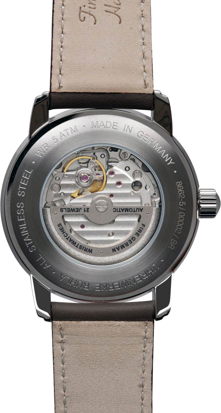 В зависимости от модели, используются механизмы: автоматические Sellita SW200, ETA 2824, Miyota 821A, а также кварцевые Ronda, Miyota. Большинство моделей имеют функции даты, хронографа, фазы Луны, второго часового пояса, а в некоторых — даже ретроградные шкалы и будильник. Надпись Made in Germany гарантирует точность сборки и контроль качества.