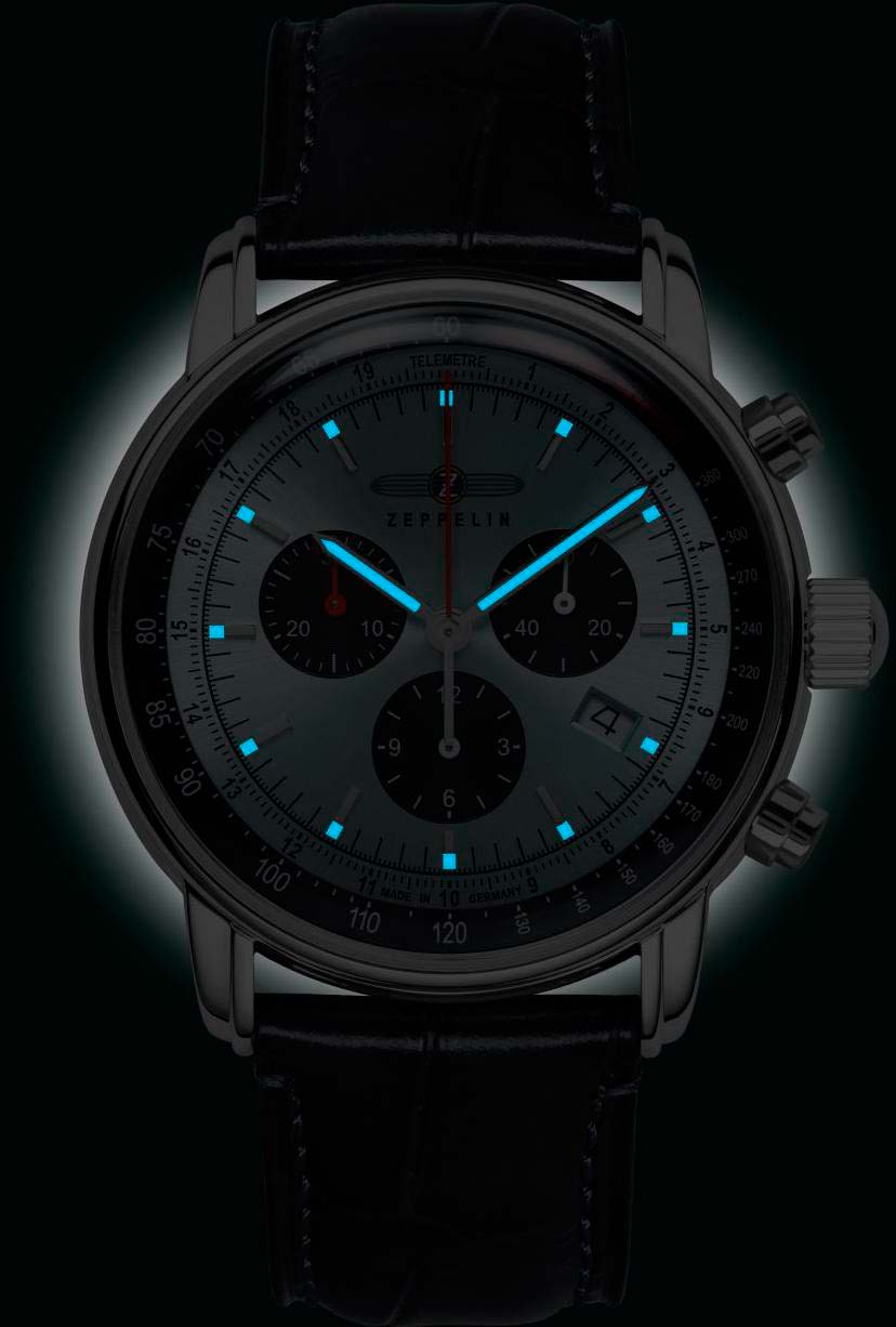 Циферблаты Zeppelin узнаваемы с первого взгляда: арабские цифры, скруглённые стрелки, шлицевая текстура, вдохновлённая корпусом дирижабля, и чёткая шкала. В коллекциях встречаются как чисто авиационные решения (GMT, тахиметр, хронографы), так и ретро-модели в духе 1930-х. Размеры корпуса варьируются от элегантных 36 мм до 43 мм — на любой вкус и запястье.