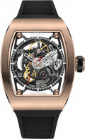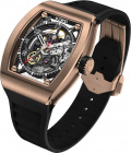 Циферблат с метками в виде штрихов и арабских цифр защищен прочным сапфировым стеклом. Прозрачная сапфировая задняя крышка крепится на 8-ми винтах. Ремешок с раскладывающейся застежкой.