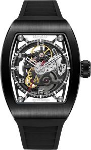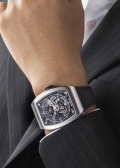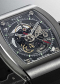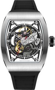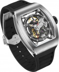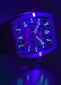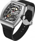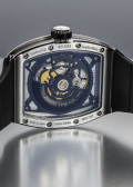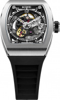 Циферблат с метками в виде штрихов и арабских цифр защищен прочным сапфировым стеклом. Прозрачная сапфировая задняя крышка крепится на 8-ми винтах. Ремешок с раскладывающейся застежкой.