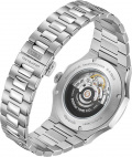 Циферблат с метками в виде штрихов защищен прочным сапфировым стеклом. Окошко даты находится в положении 3 часа. Заводная головка с защитой. Прозрачная задняя крышка с сапфировым стеклом. Браслет с раскладывающейся застежкой.