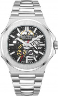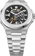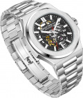 Циферблат с метками в виде штрихов защищен прочным сапфировым стеклом. Заводная головка с защитой. Прозрачная задняя крышка с сапфировым стеклом. Браслет с раскладывающейся застежкой.