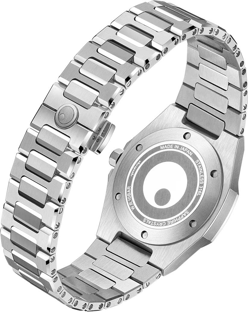 Циферблат с метками в виде штрихов защищен прочным сапфировым стеклом. Окошко даты находится в положении 3 часа. Заводная головка с защитой. Браслет с раскладывающейся застежкой.
