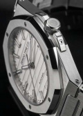 Циферблат с метками в виде штрихов защищен прочным сапфировым стеклом. Окошко даты находится в положении 3 часа. Заводная головка с защитой. Браслет с раскладывающейся застежкой.