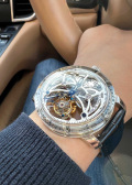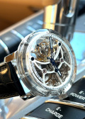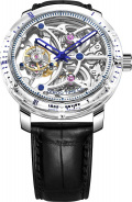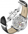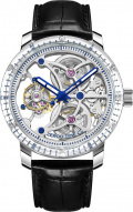 Циферблат с метками в виде штрихов. Прозрачная задняя крышка с сапфировым стеклом крепится на 6-ти винтах. Ремешок с раскладывающейся застежкой и системой быстрой замены.