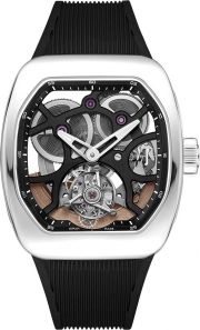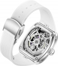 Циферблат защищен прочным сапфировым стеклом. Прозрачная задняя крышка с сапфировым стеклом крепится на 4-х винтах. Рифленая заводная головка. Ремешок с раскладывающейся застежкой.