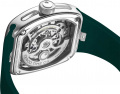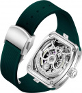Циферблат защищен прочным сапфировым стеклом. Прозрачная задняя крышка с сапфировым стеклом крепится на 4-х винтах. Рифленая заводная головка. Ремешок с раскладывающейся застежкой.