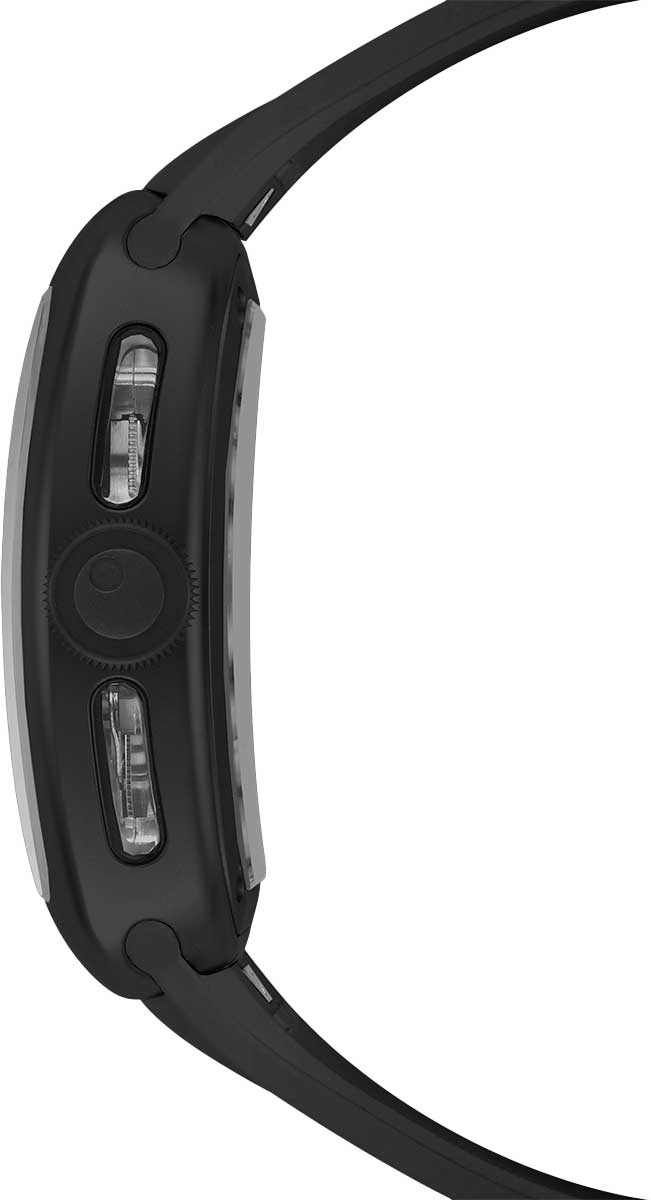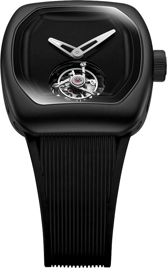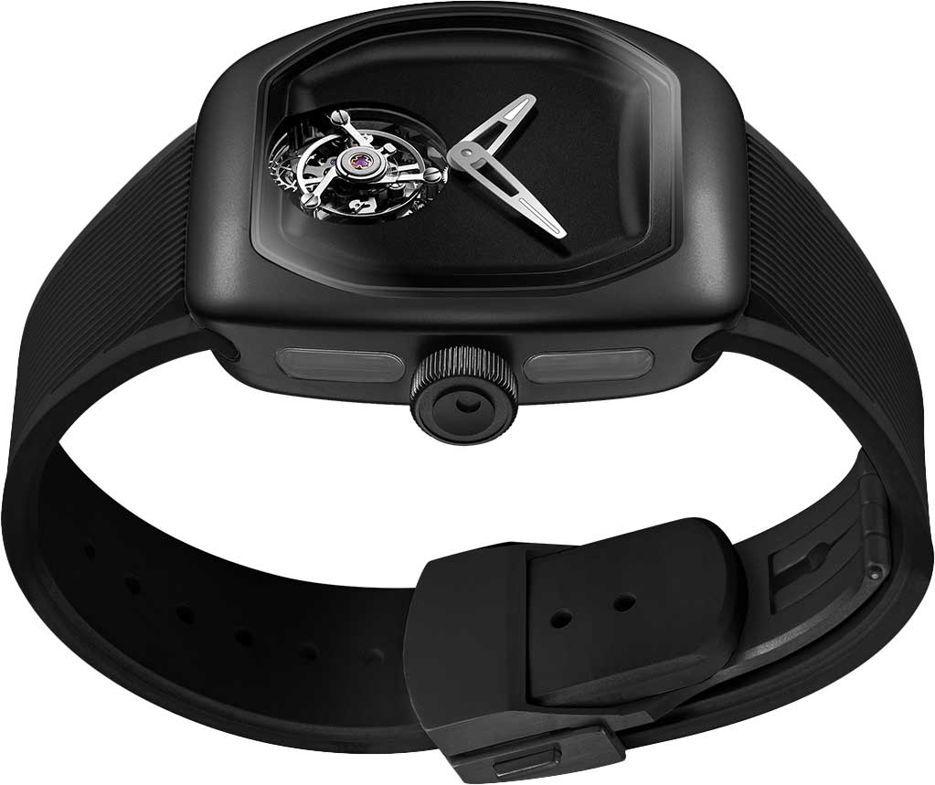 Циферблат защищен прочным сапфировым стеклом. Прозрачная задняя крышка с сапфировым стеклом крепится на 4-х винтах. Рифленая заводная головка. Ремешок с раскладывающейся застежкой.